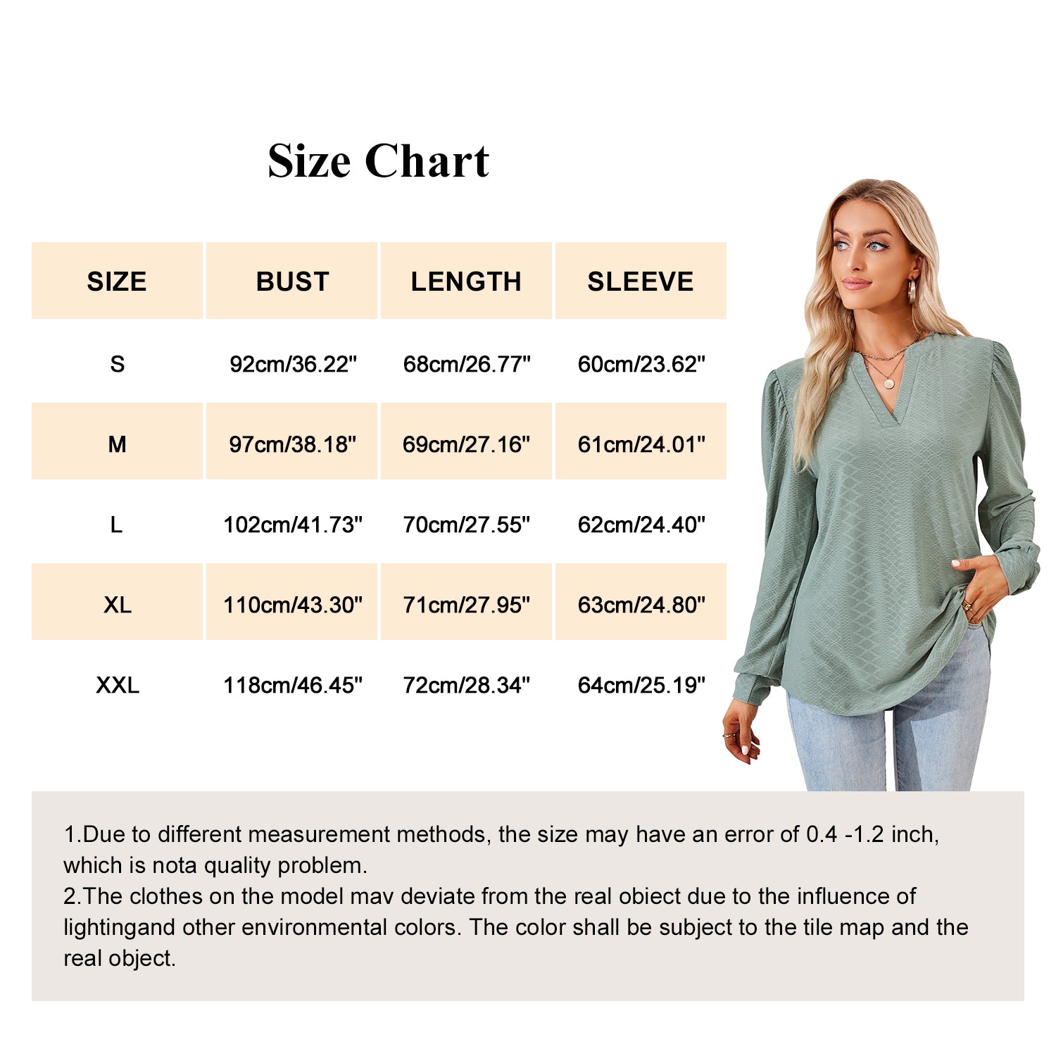 - 【Features】:The V-neck gracefully accents the neckline, adding an air of elegance and charm. The puff long sleeves not only look stylish but also provide coverage and a touch of drama. The pullover design offers effortless ease and convenience, allowing for quick and seamless dressing. The tunic top style gives an elongated and flattering silhouette, enhancing the overall look.