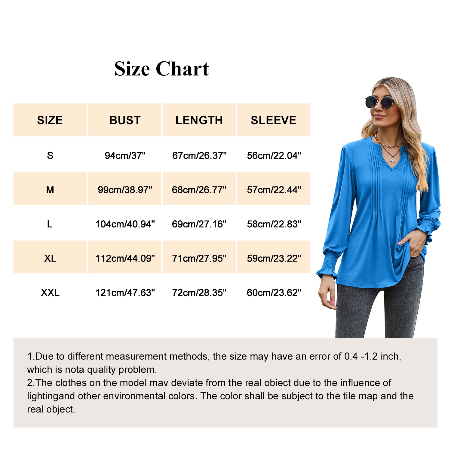 - 【Features】:The V neck is an elegant and flattering design. It gracefully frames the face and neck, creating a more refined and sophisticated look. It allows for the display of a delicate necklace and draws attention to the collarbone area, adding a touch of femininity. The puff detail adds volume and a sense of drama to the garment, making it stand out. The tunic top style offers versatility. The pleated style in the middle, for example, can cinch in the waist, creating a more defined and flattering silhouette.