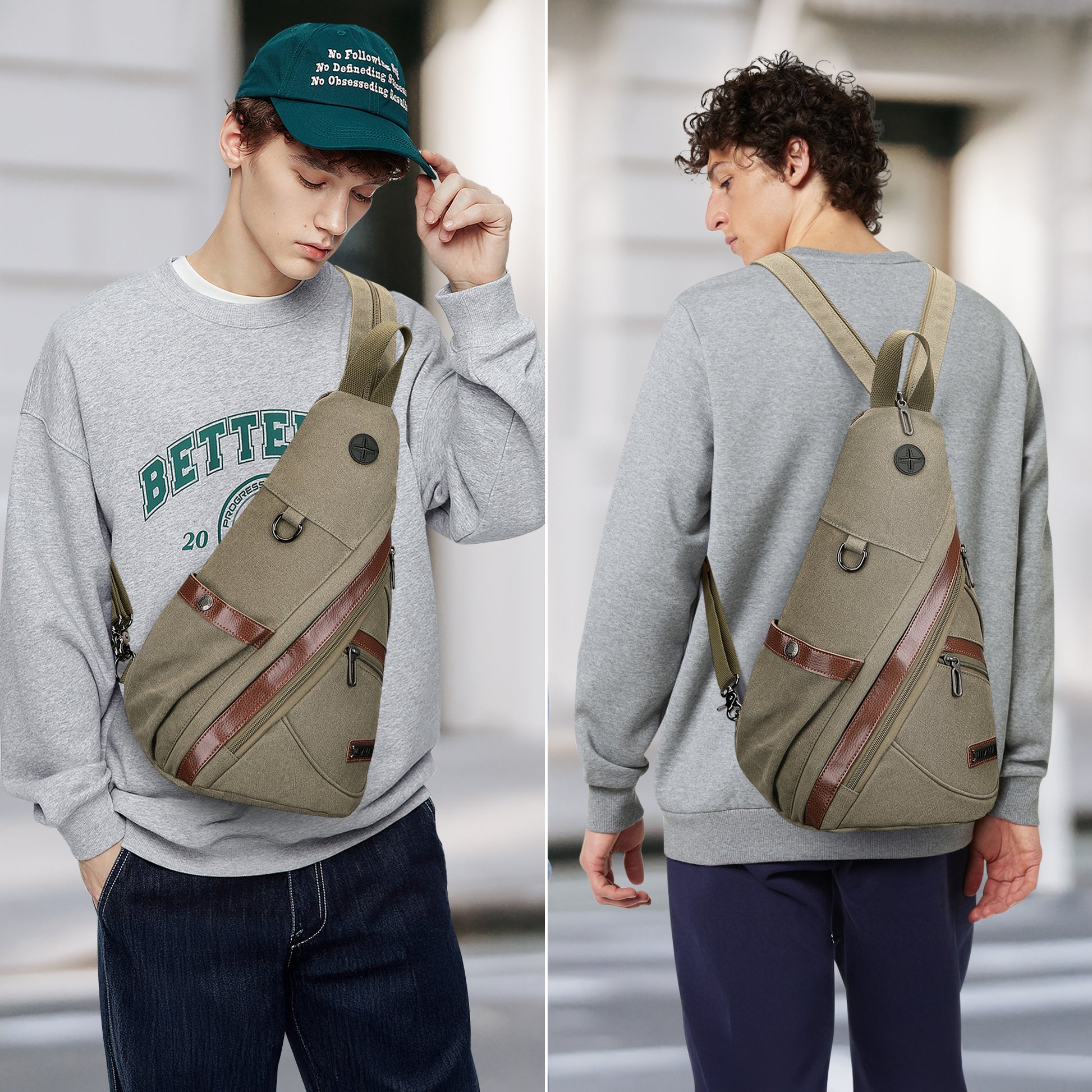 WITZMAN Canvas Sling Bag for Men Women Convertible Sling Backpack Crossbody Vintage Chest Bag Travel Casual Daypack(A8003)