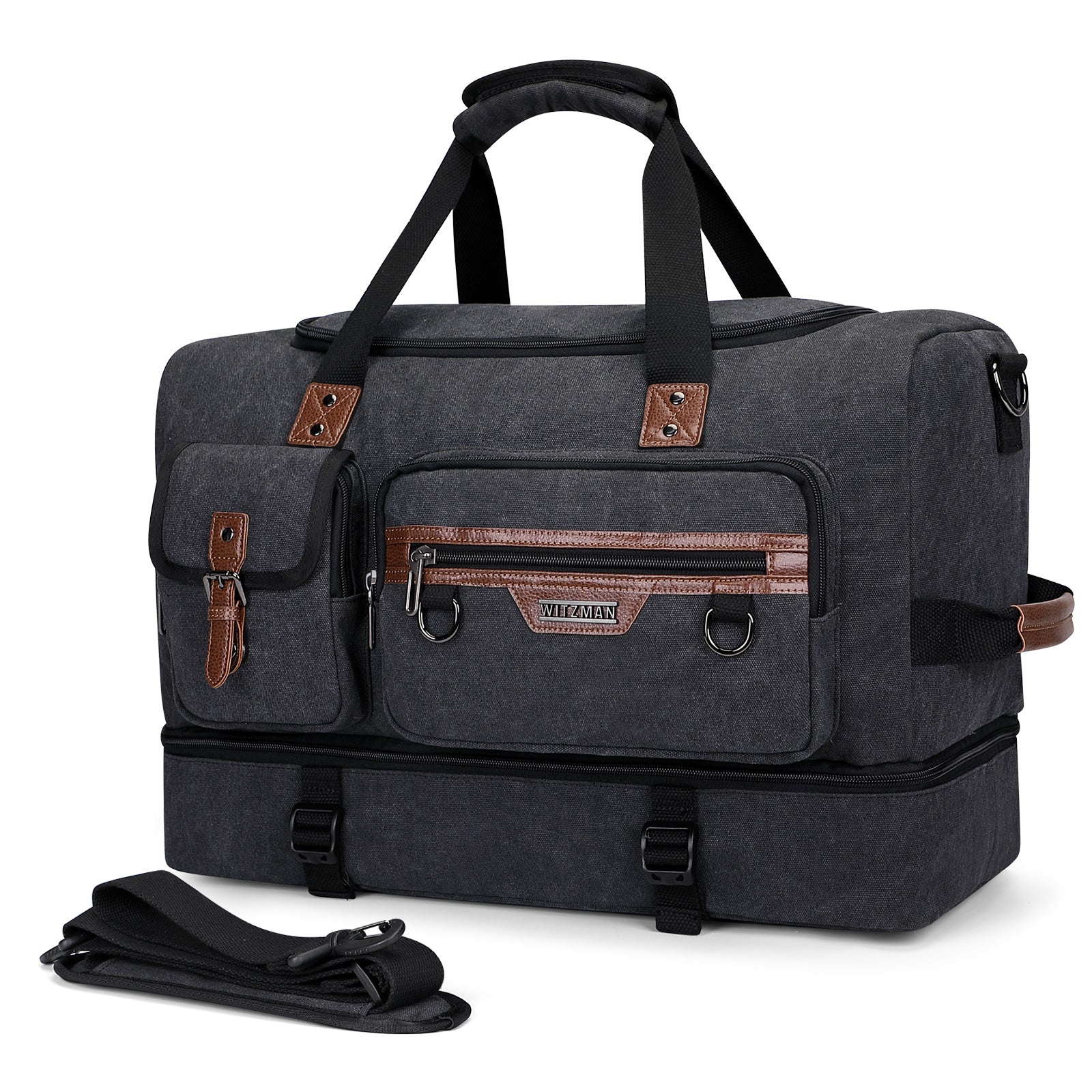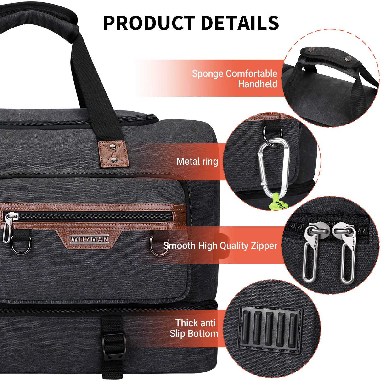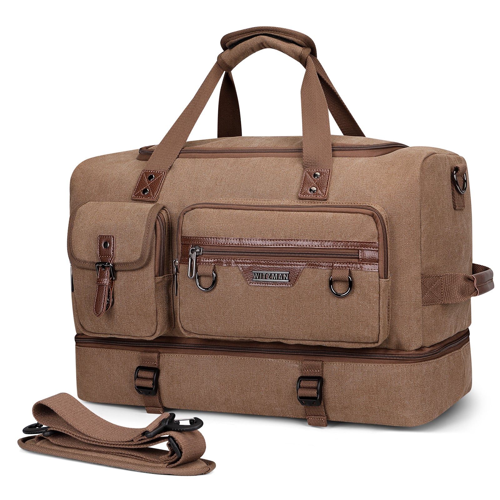 WITZMAN Canvas Weekender Bag Mens Overnight Bag for Traveling Carry on Duffle Bags with Shoes Compartment(A8010 )