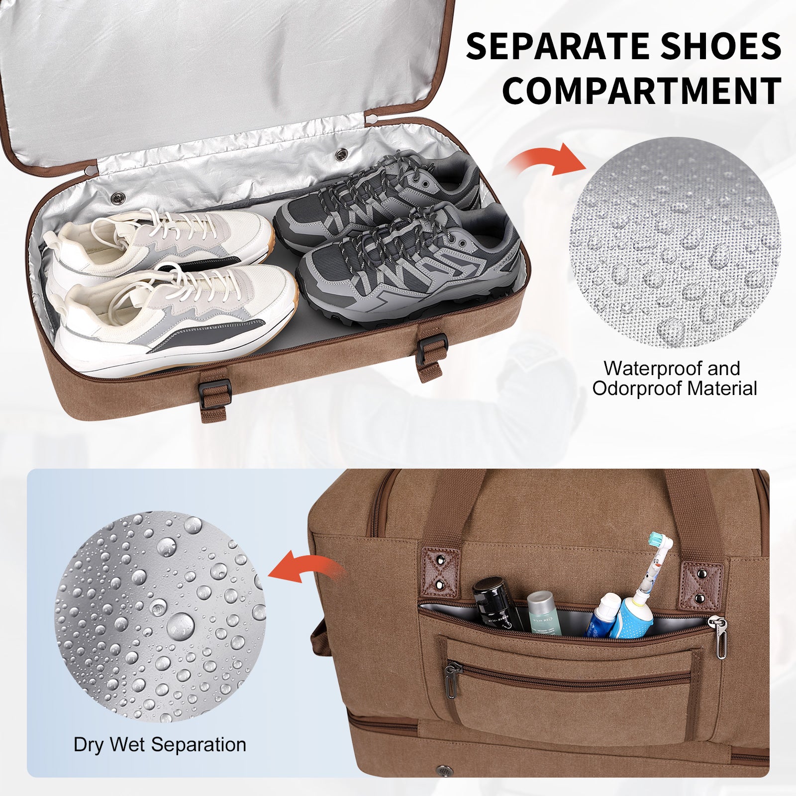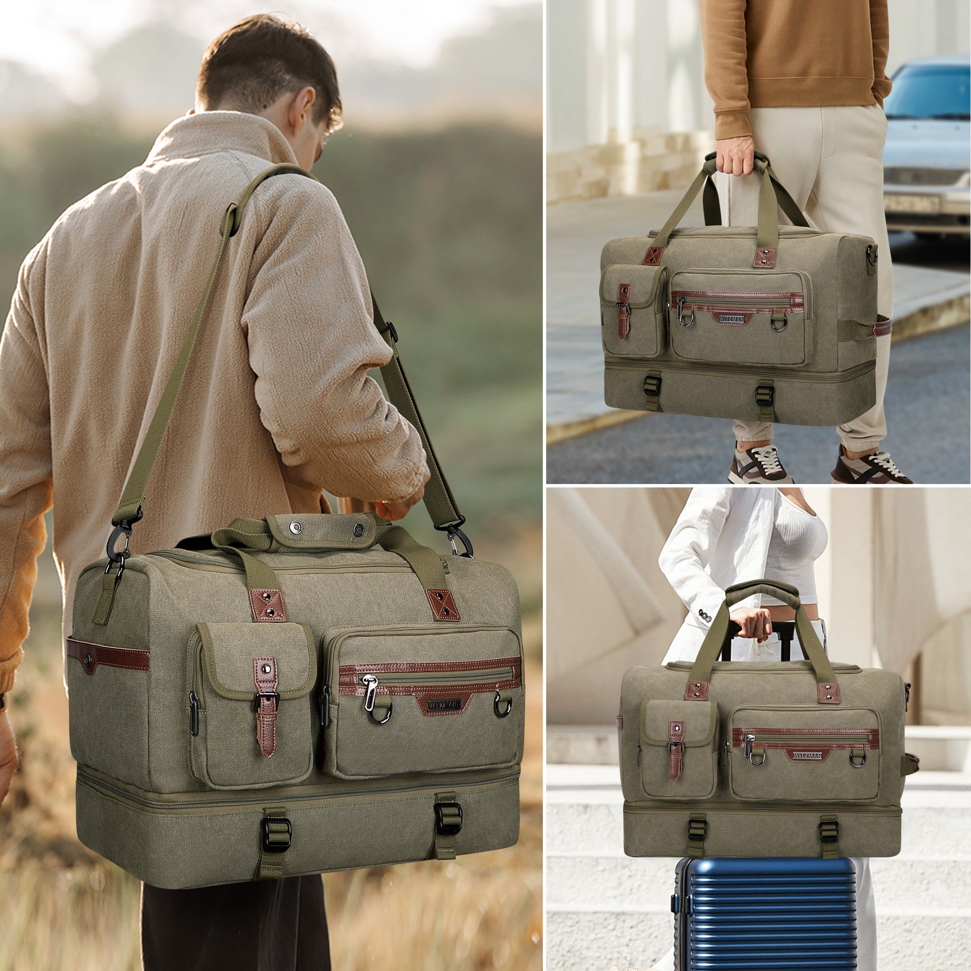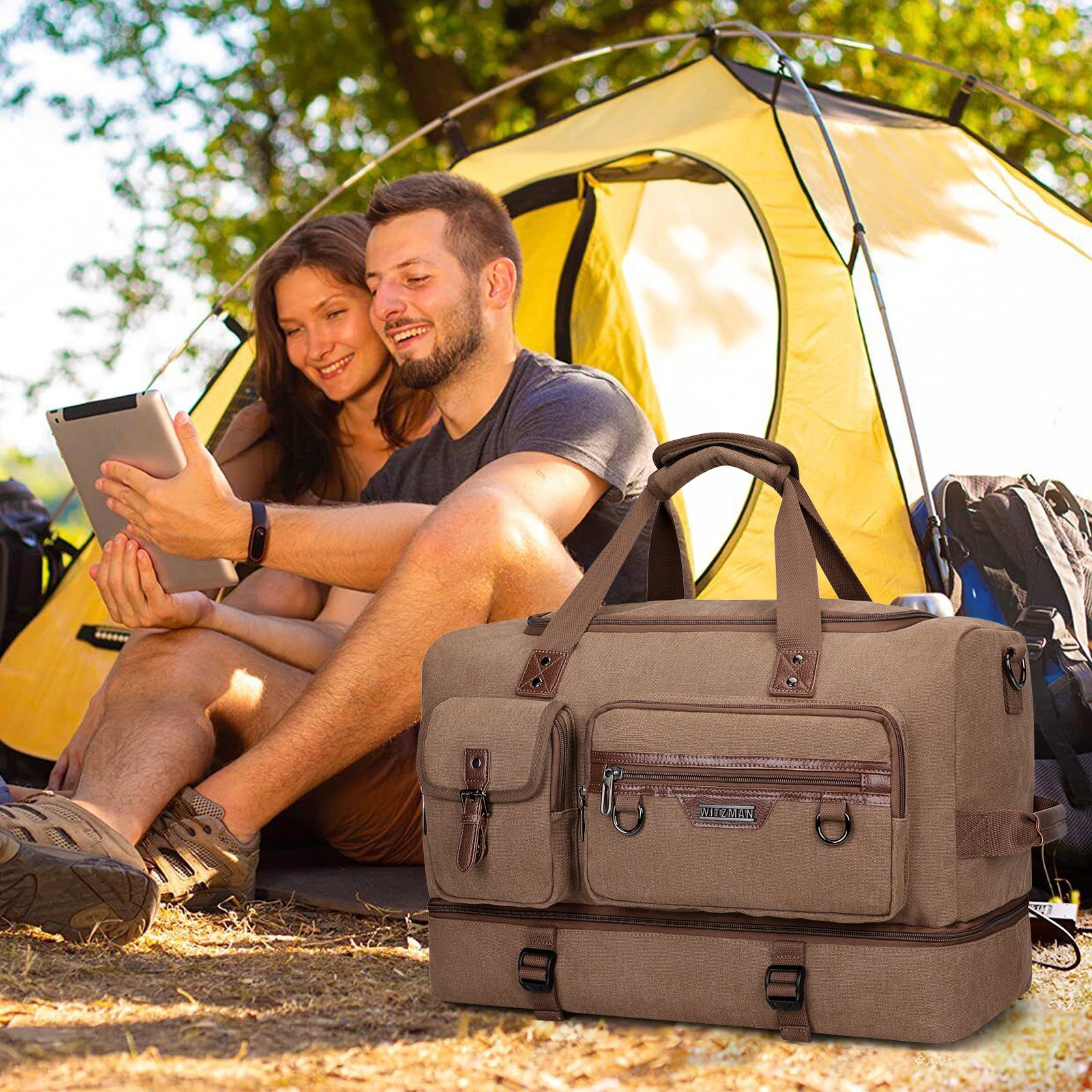 WITZMAN Canvas Weekender Bag Mens Overnight Bag for Traveling Carry on Duffle Bags with Shoes Compartment(A8010 )