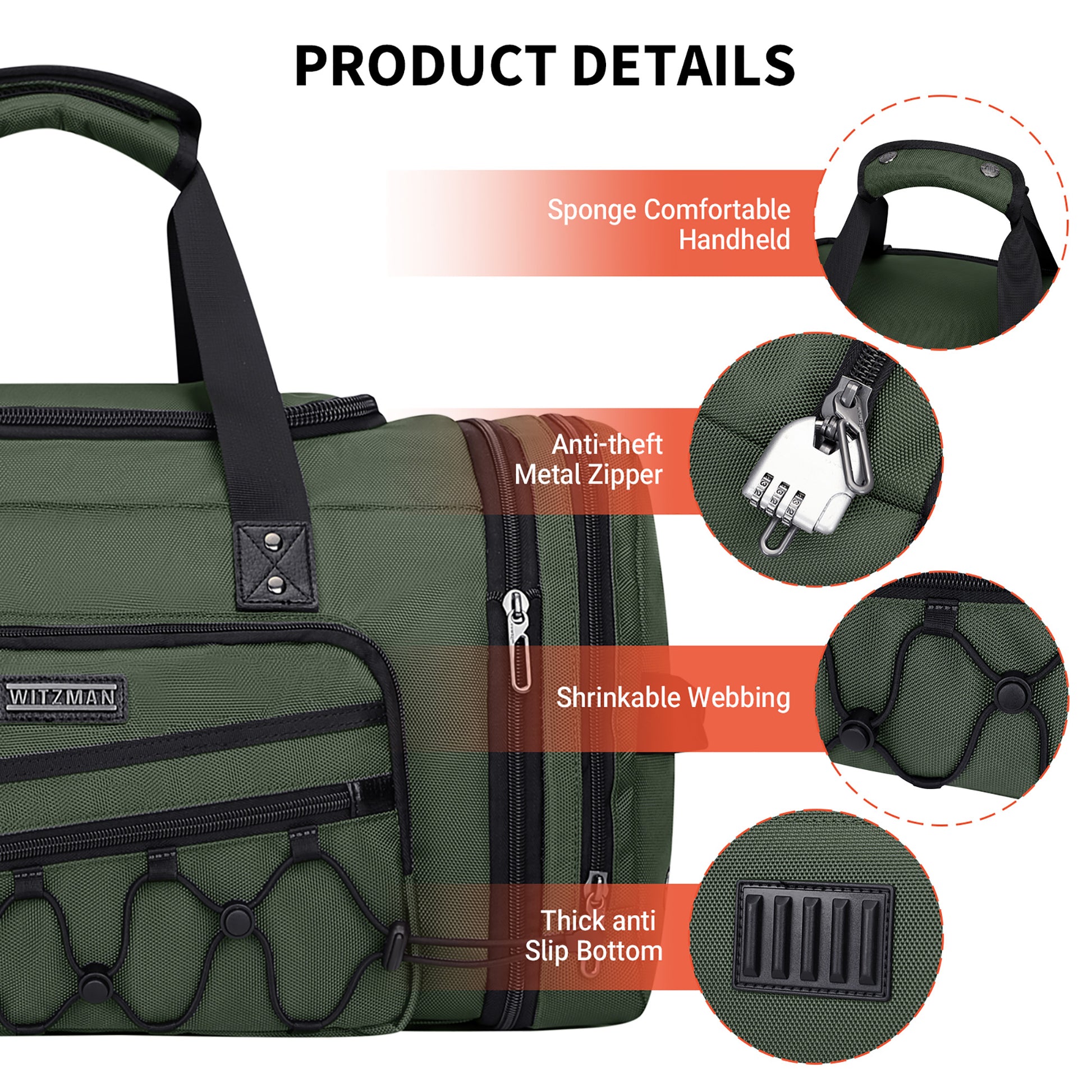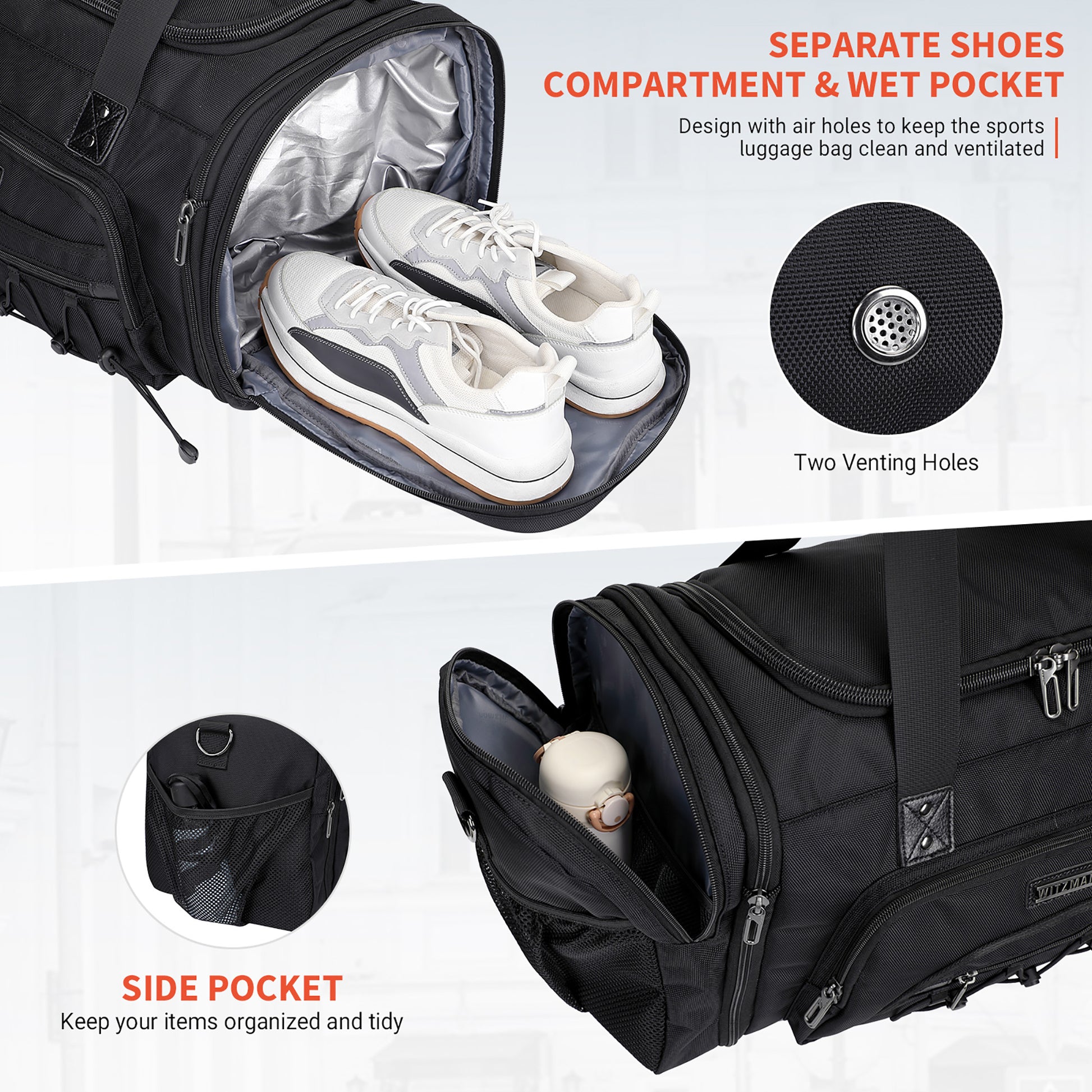 WITZMAN Duffle Bag for Men Nylon Large Gym Weekender Bag with Shoe Compartment Expandable Overnight Bag Carry on Bag (B695 )