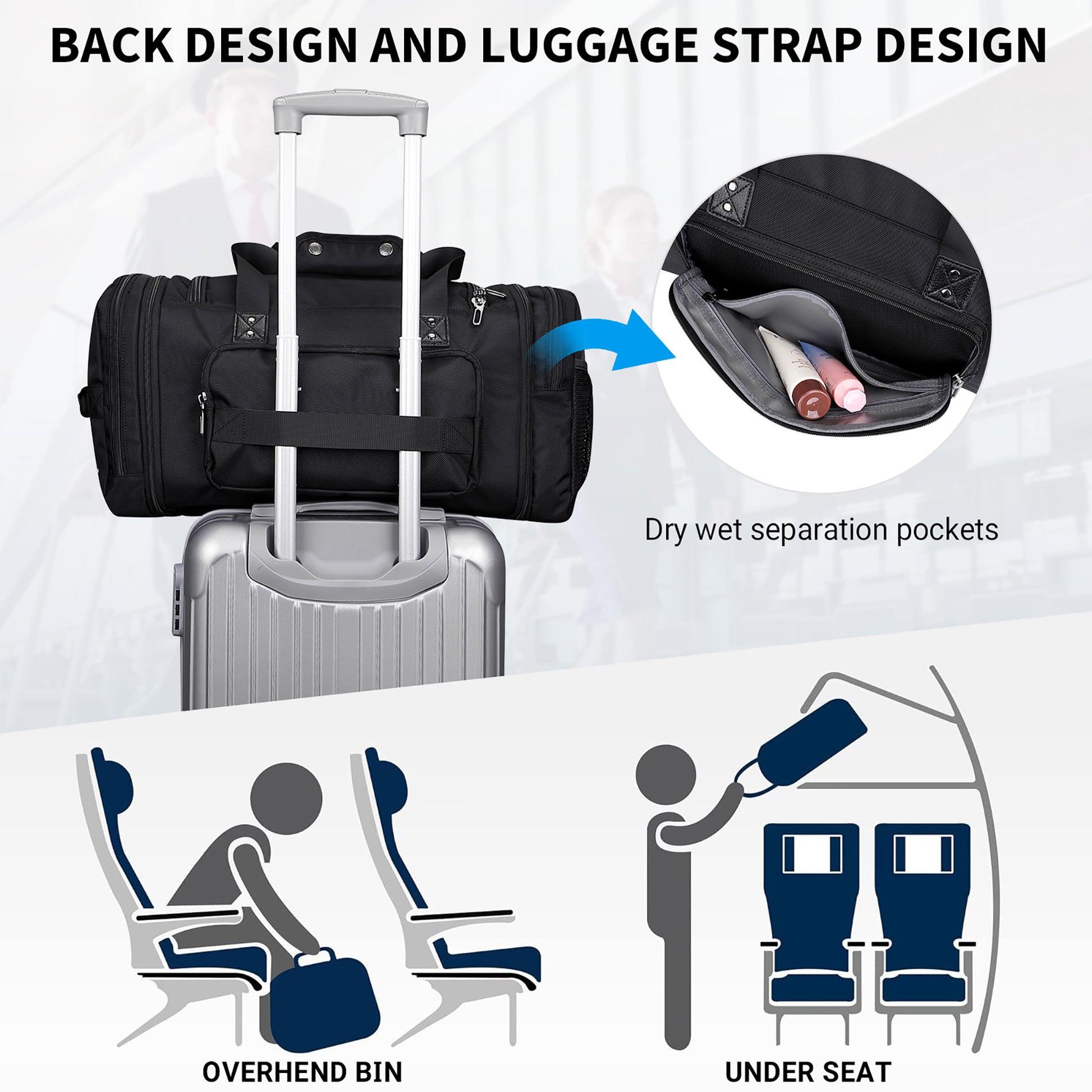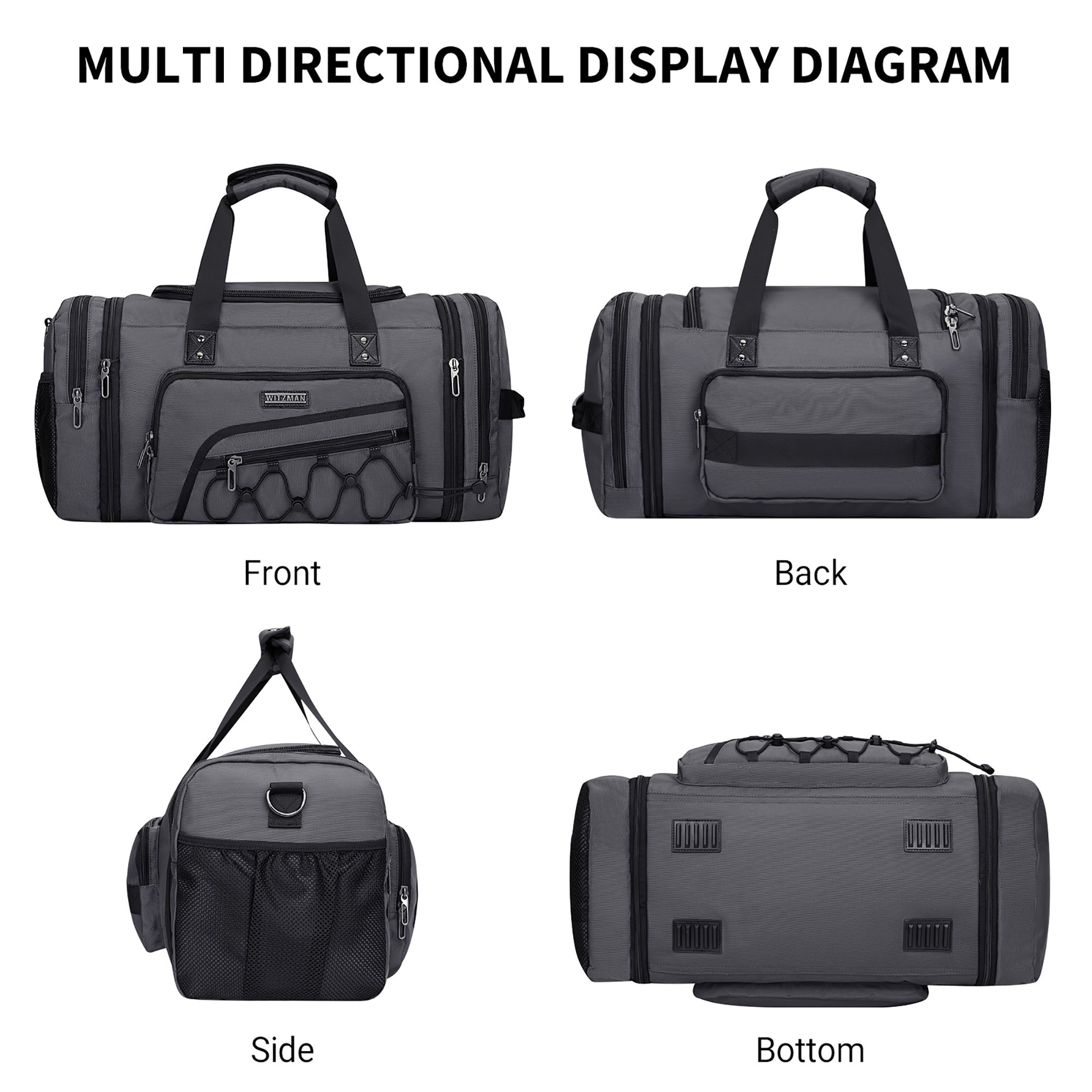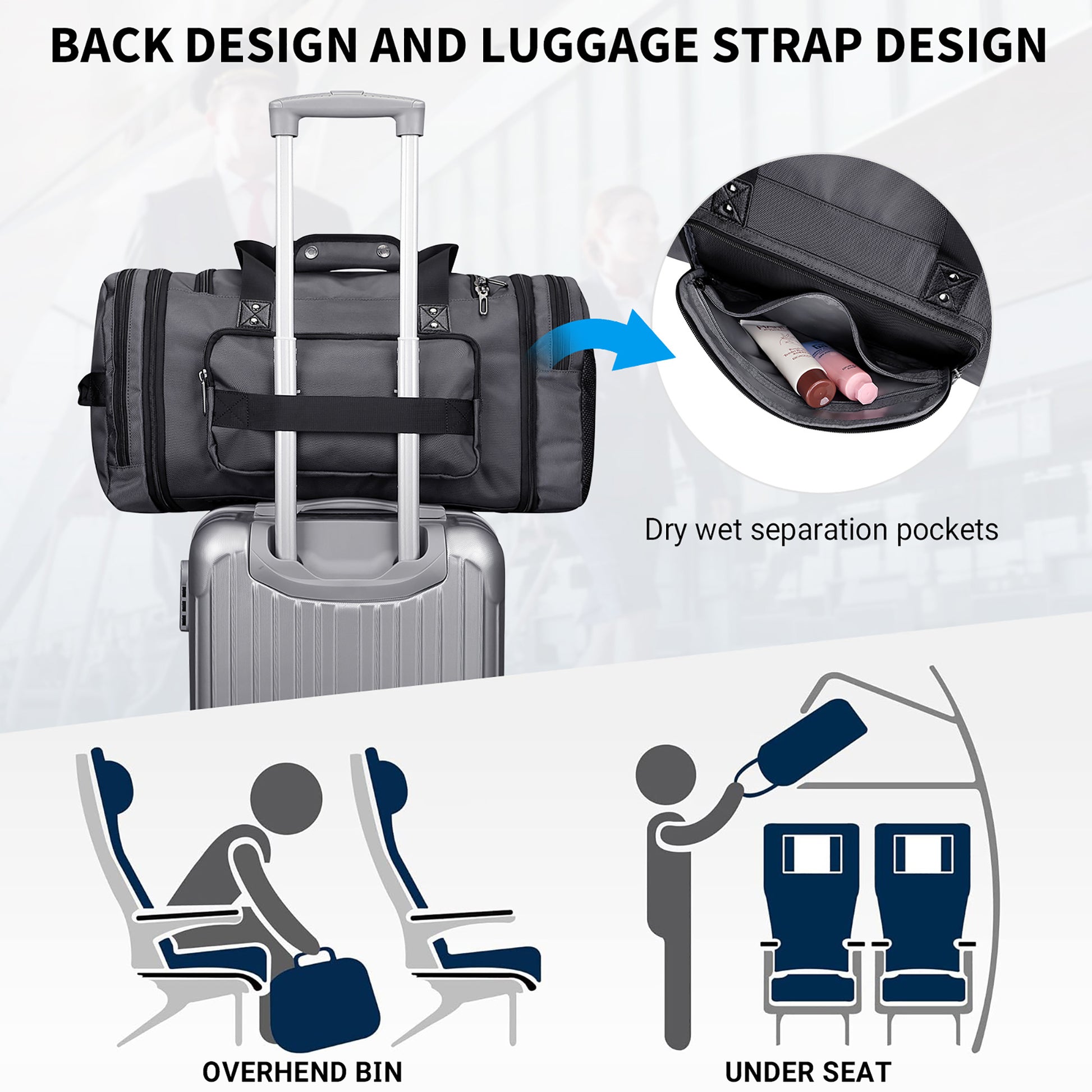 - Comfortable Carrying Method: This travel bag comes with a circular stitching handle and adjustable, detachable padded shoulder straps. It has 3 carrying ways:tote bag, carry on the shoulder or cross body. Comfortable handles and shoulder straps reduce the burden of travel, allowing you to travel happily.The back of the luggage bag also comes with a hidden luggage strap, allowing you to place your travel bag on your luggage and liberate your hands.