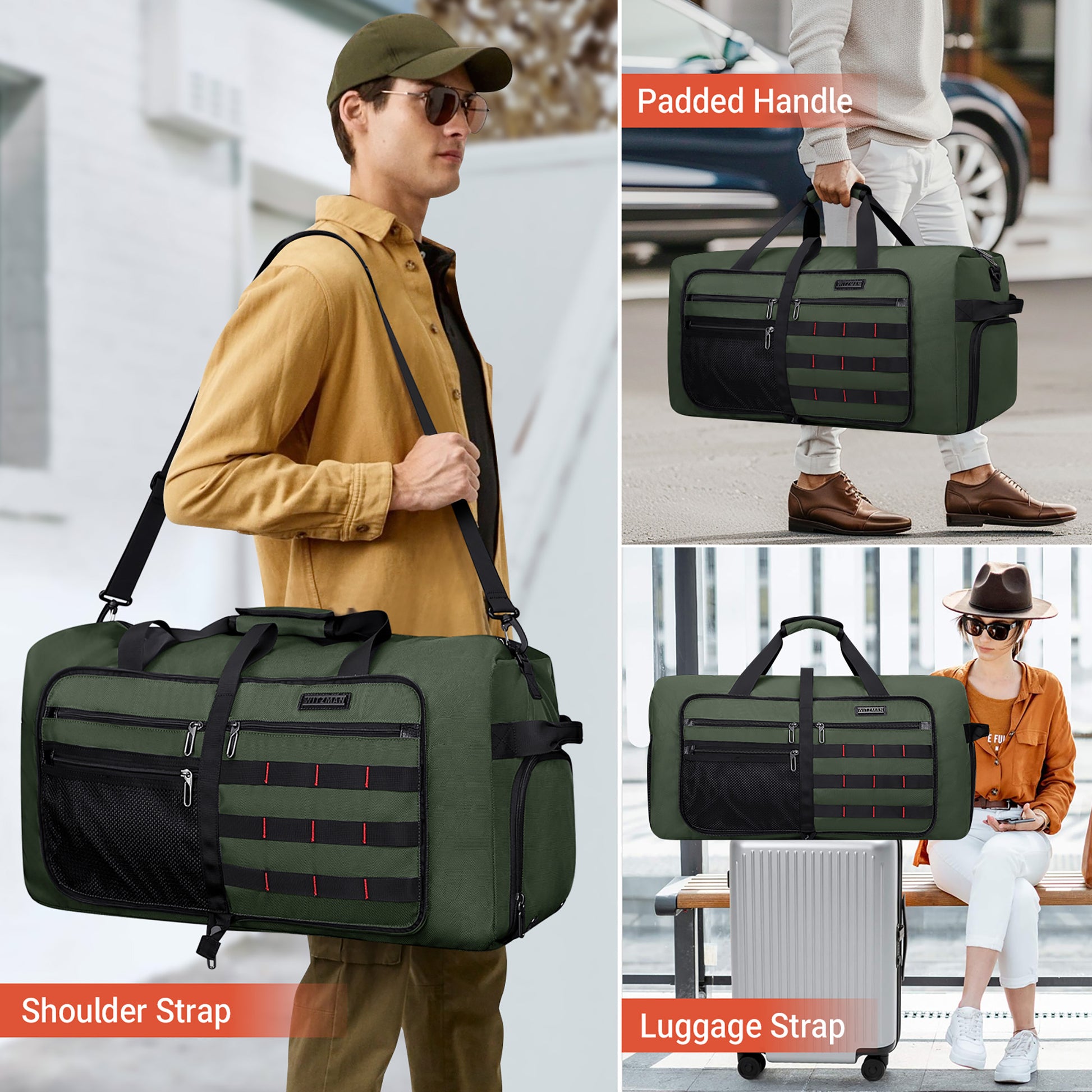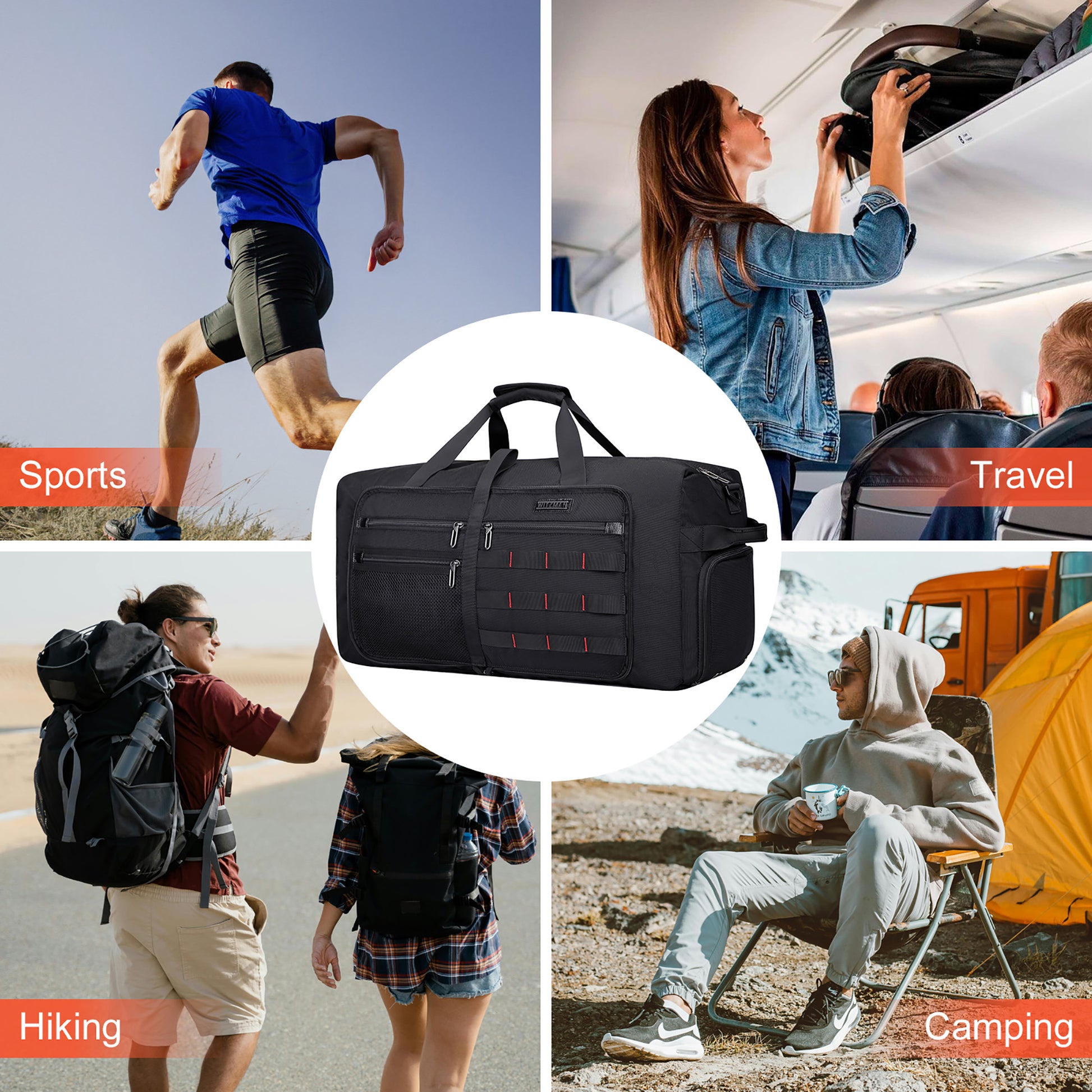 - Multipurpose Duffel Bag: This duffle bag is both stylish and practical, it could be served as duffel bags for traveling, weekender bag, overnight bag, moving bag, camping duffle bag, garment duffle bag, etc. Unfold at the airport to carry your present or souvenirs, laundry, or to transfer items from a damaged suitcase to avoid excess baggage charges.