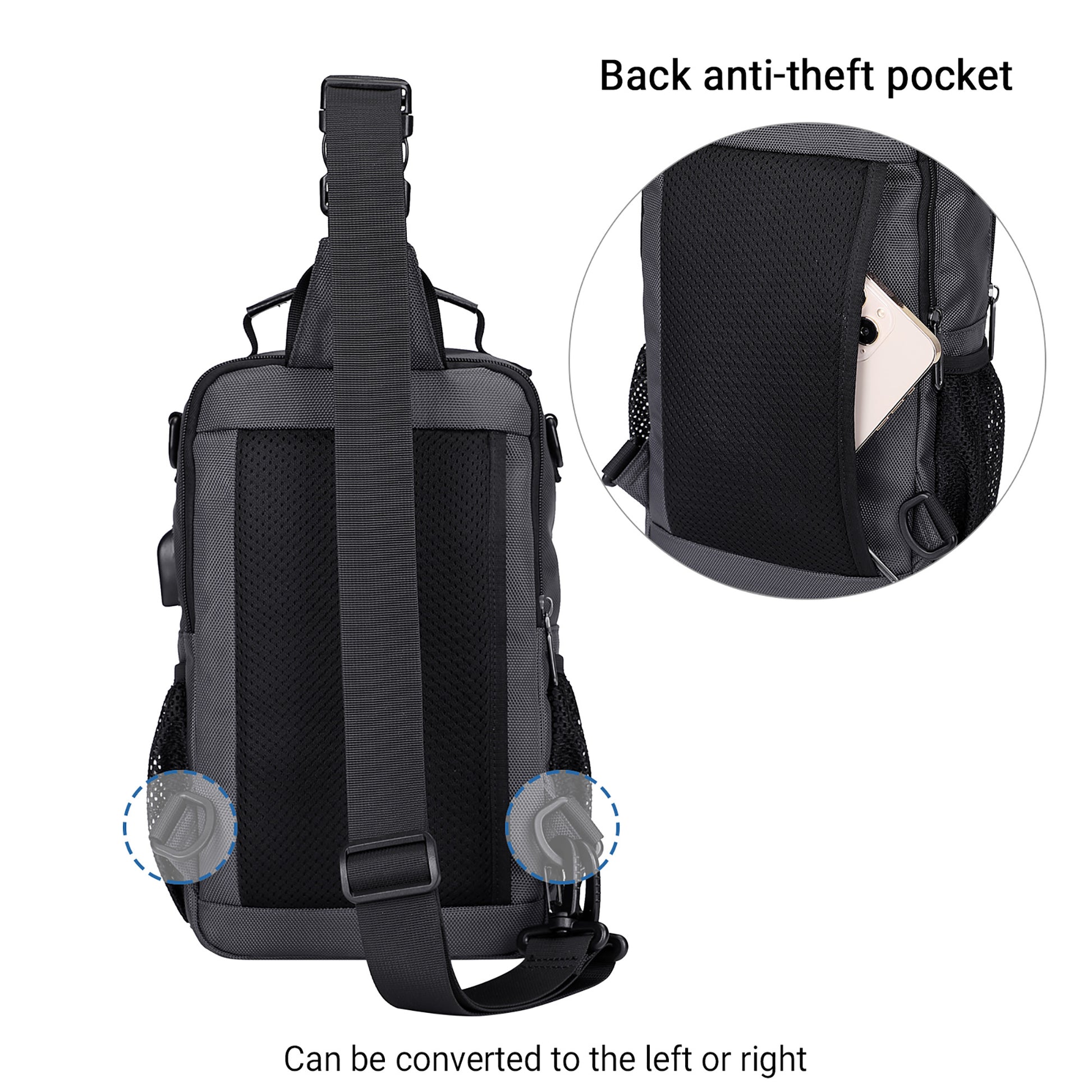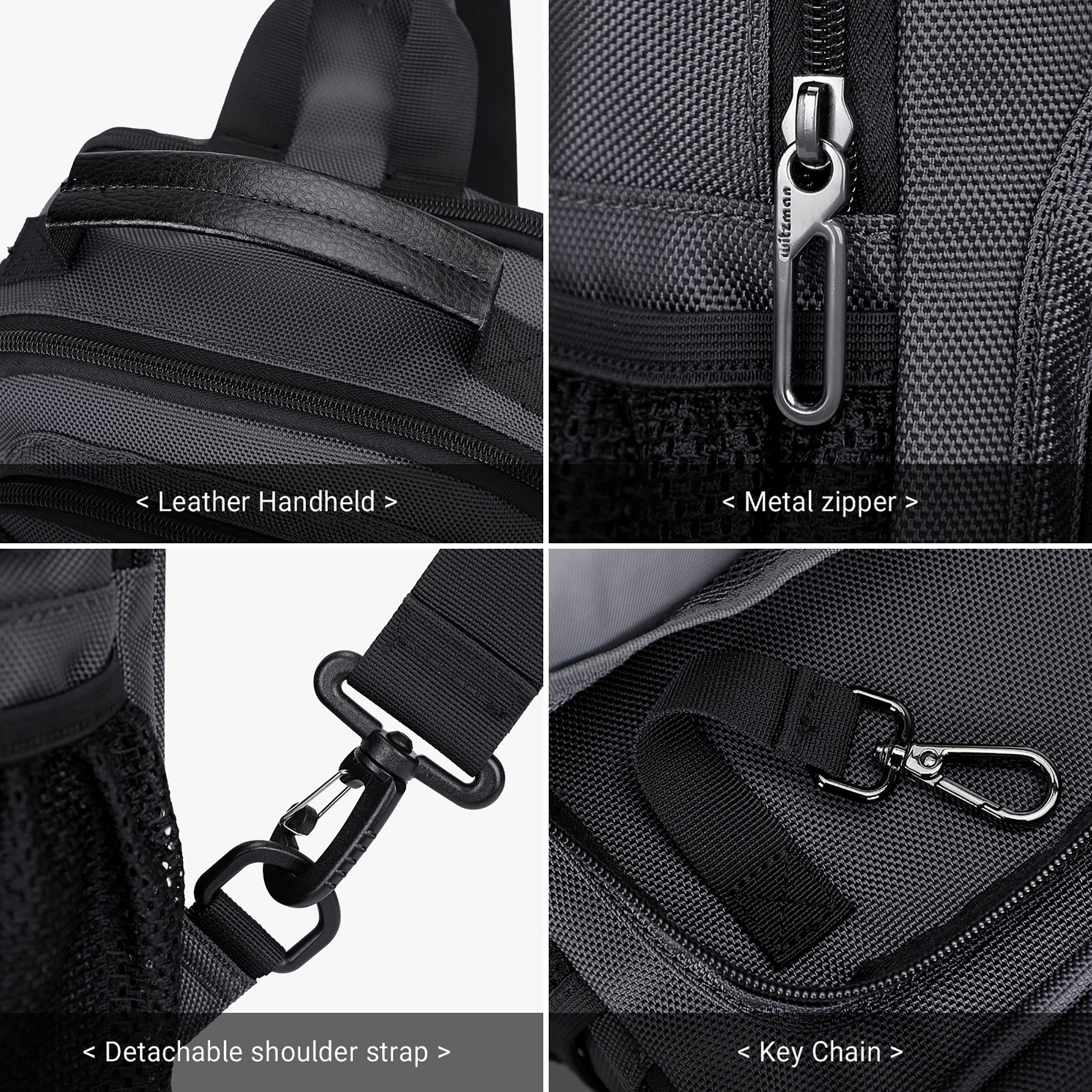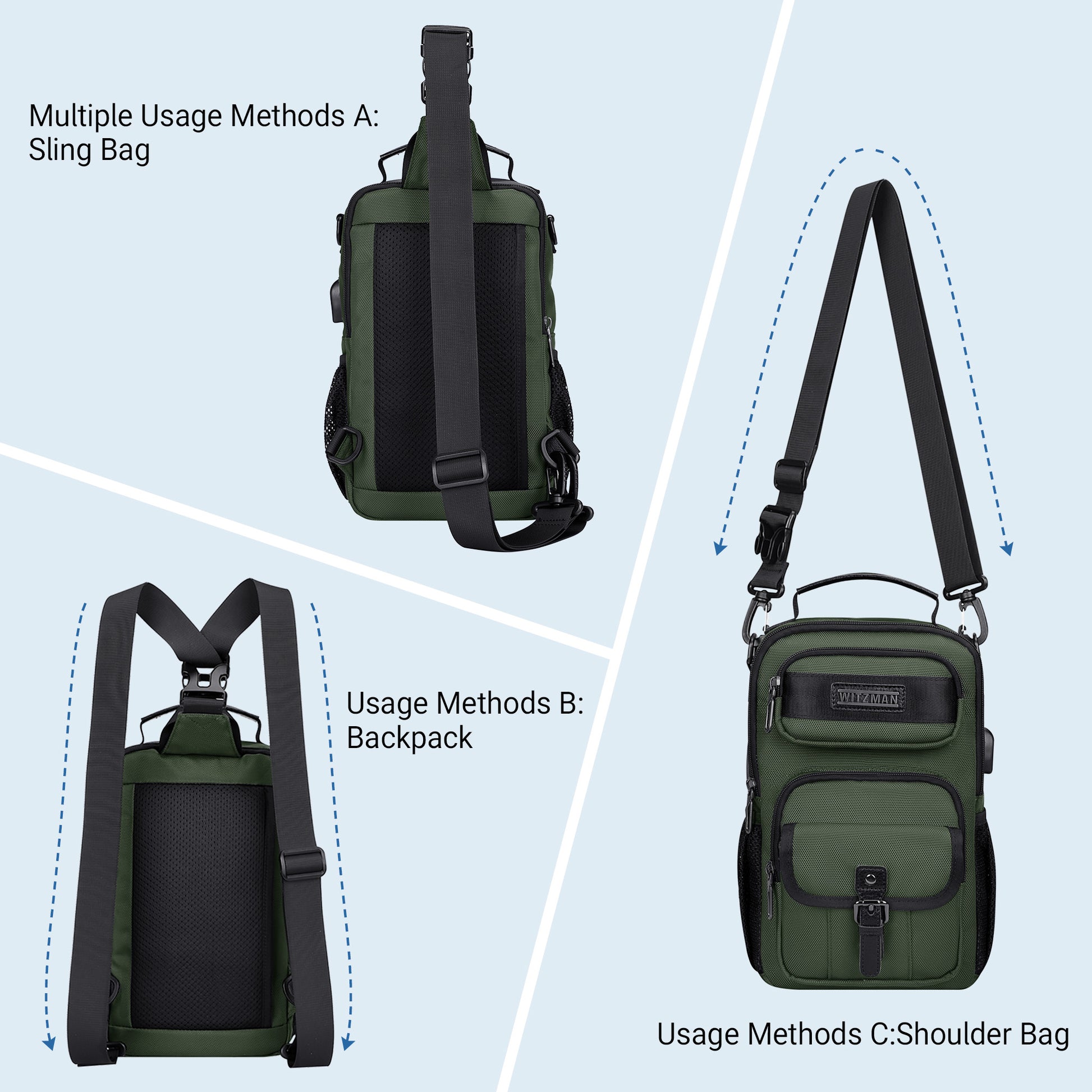 WITZMAN Sling Bag for Men Convertible Travel Sling Backpack USB Charging Port Lightweight Crossbody Bags Casual Daypack(B698)