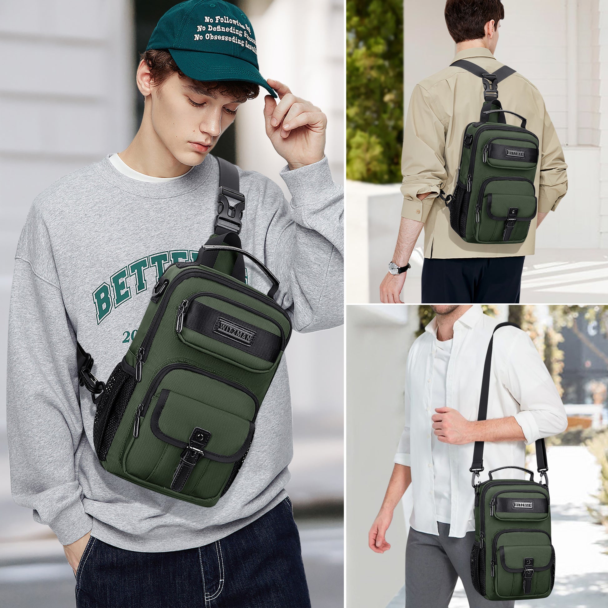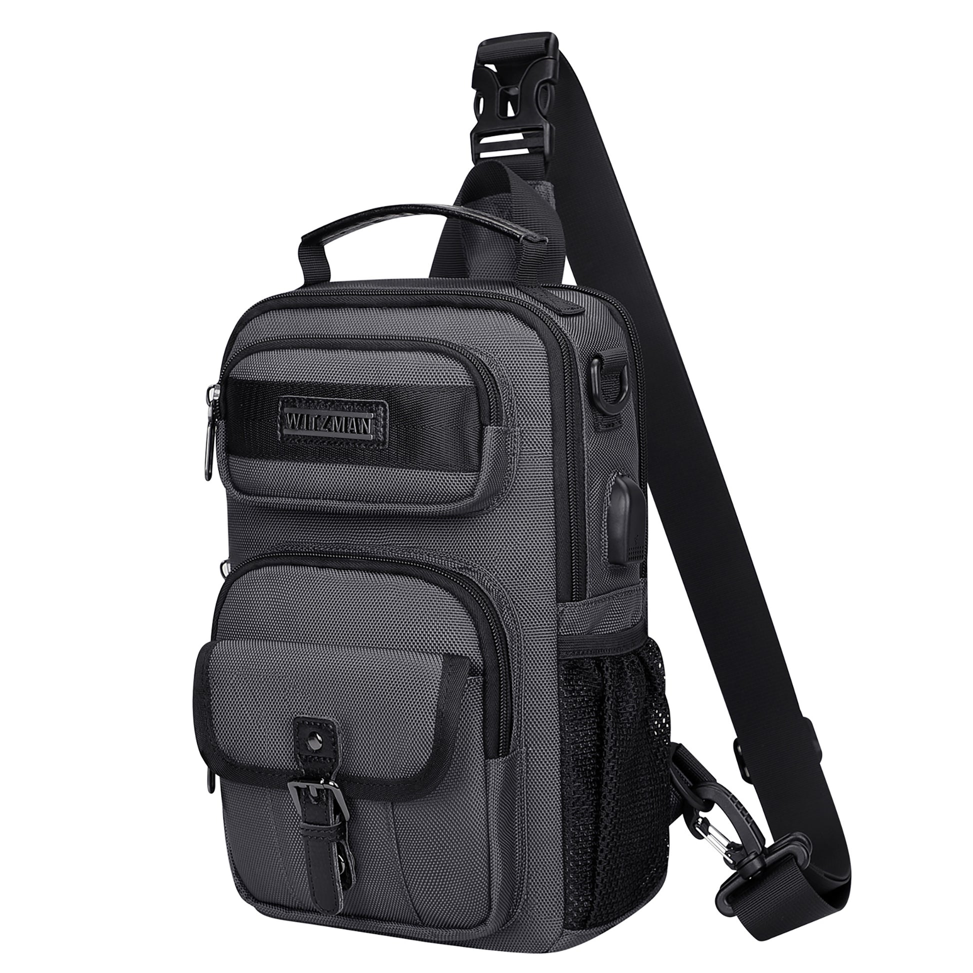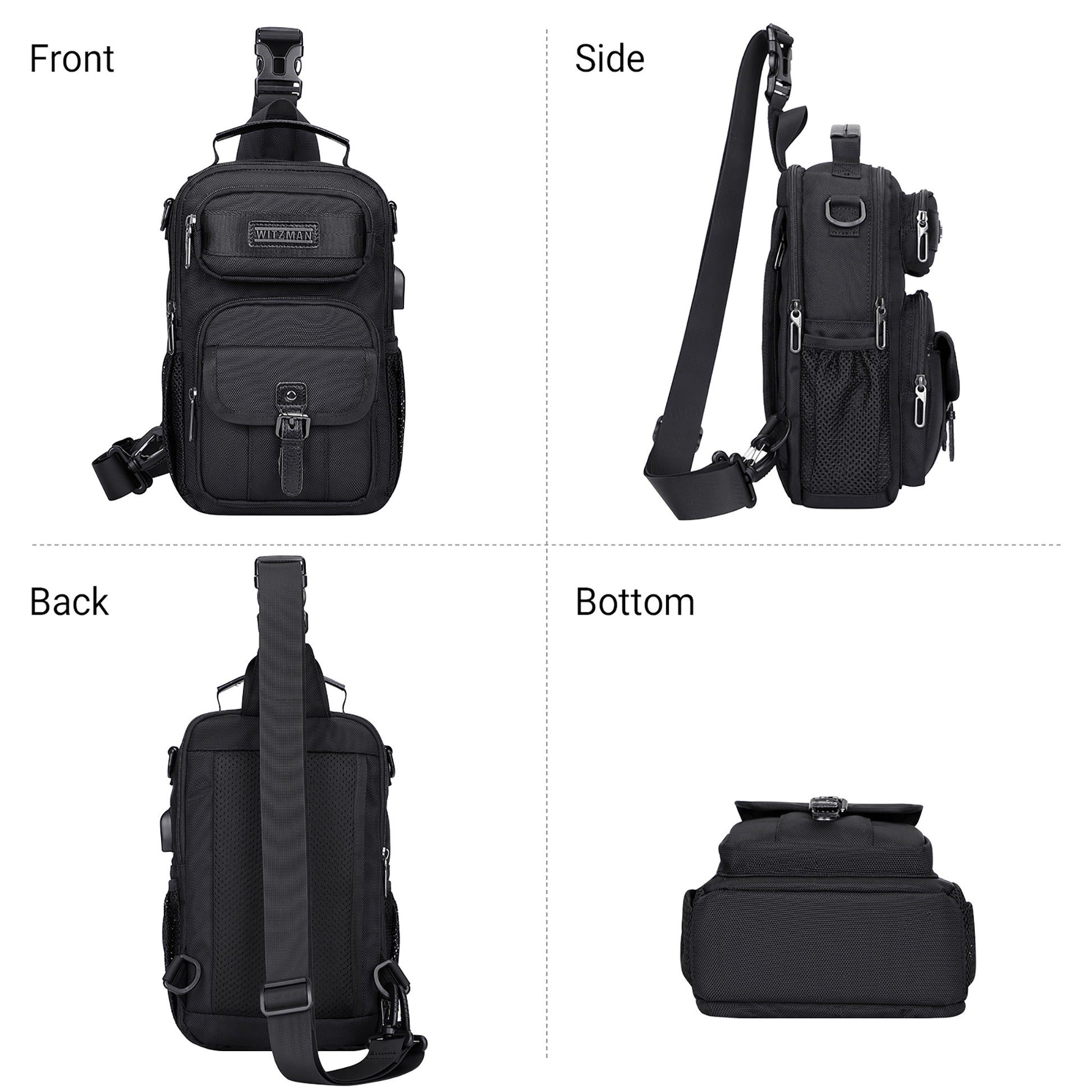 WITZMAN Sling Bag for Men Convertible Travel Sling Backpack USB Charging Port Lightweight Crossbody Bags Casual Daypack(B698)