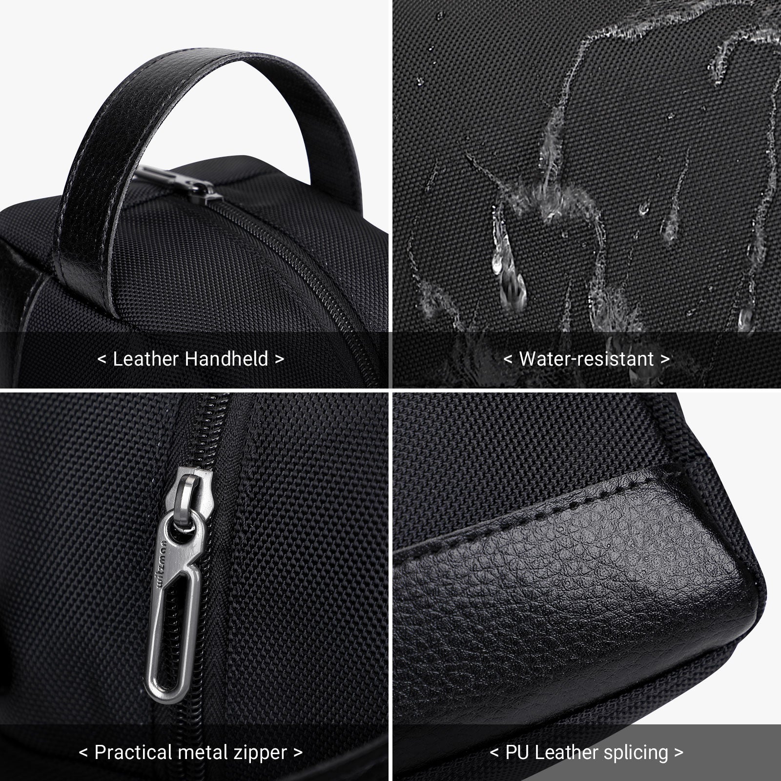 - Material: This toiletry travel bag is made from high-quality nylon fabric. Grey polyester lining, soft decompression foam shoulder strap, practical metal zipper.