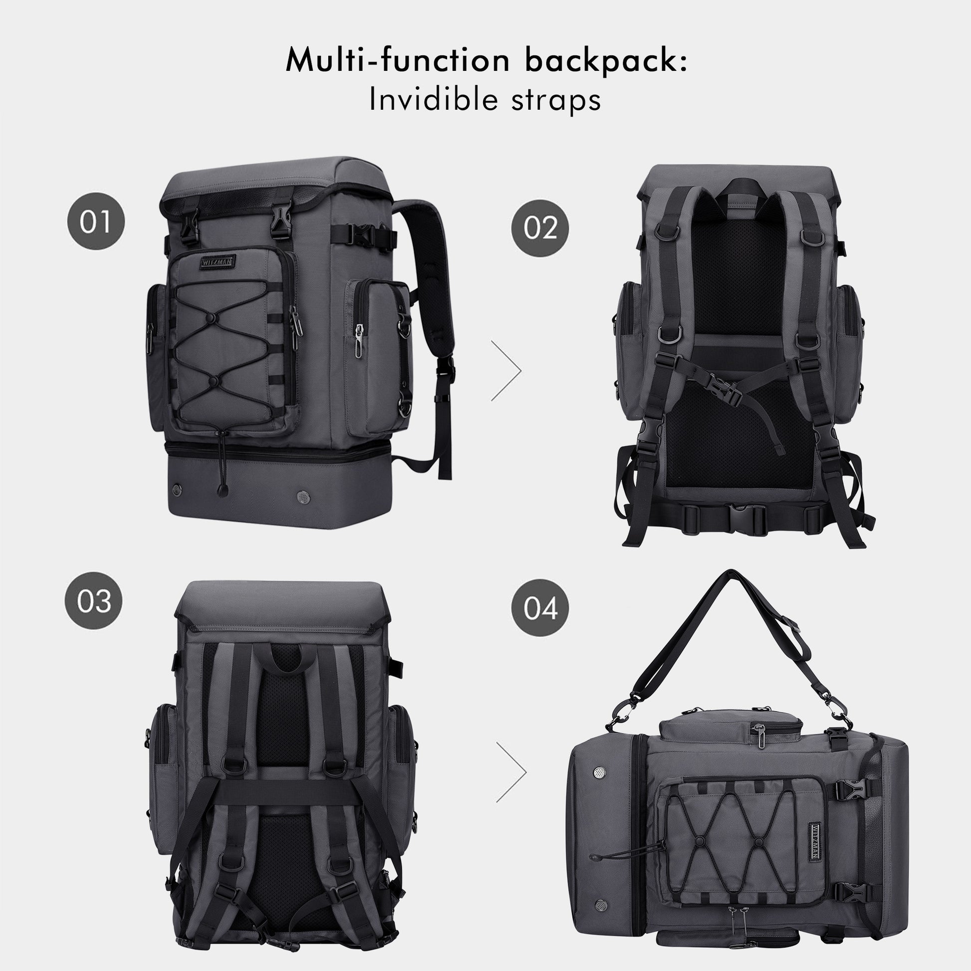 - Multi Functional Backpack: This carry on backpack comes with a 35 to 50 inch removable and adjustable shoulder strap which can be hidden in a large zipper pocket on the back, enabling multiple carrying options: duffel bag, crossbody bag, shoulder bag.
