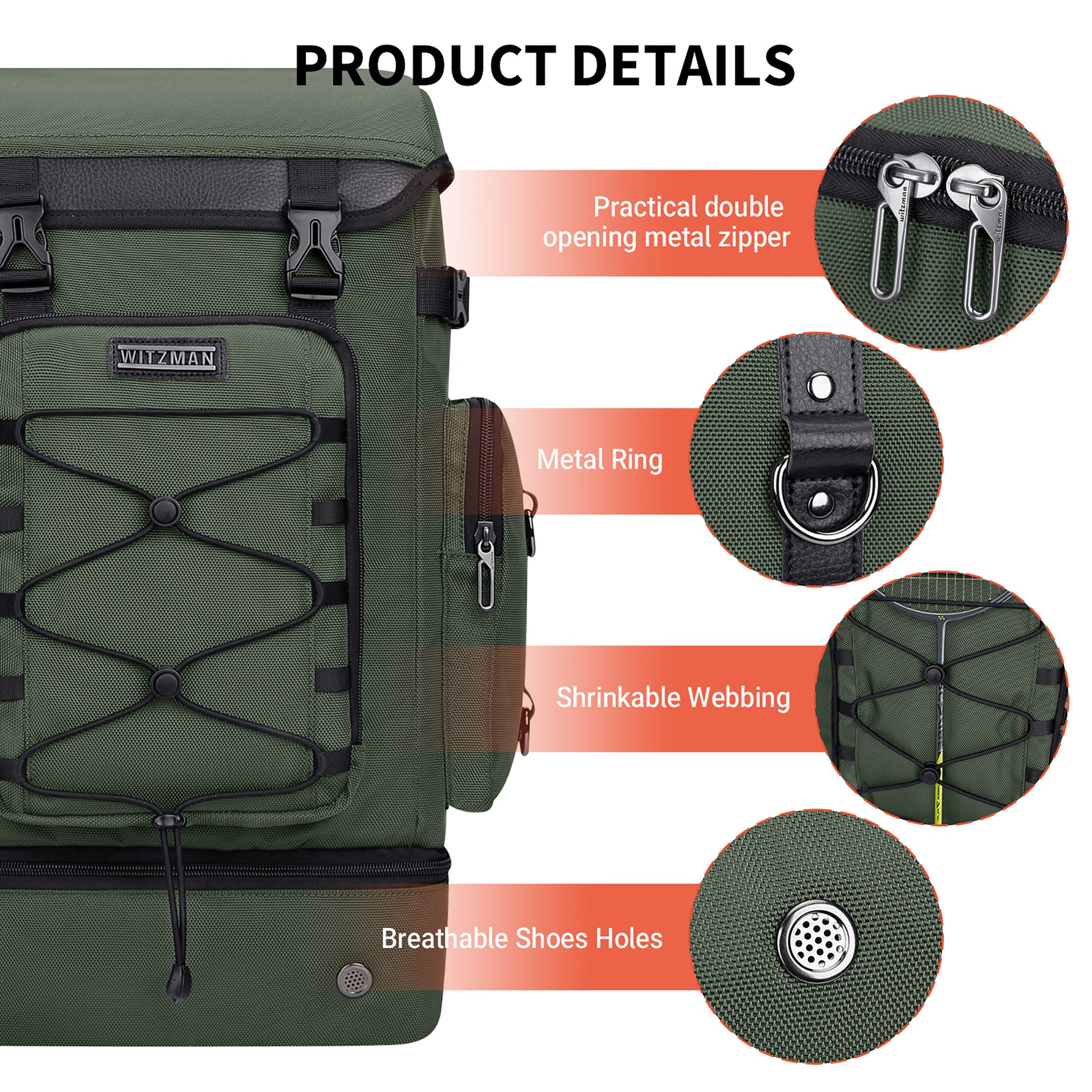 WITZMAN Travel Backpack for Men Women Carry on Bags for Airline Approved Convertible Duffle Luggage Backpack Shoe Compartment(B691 )